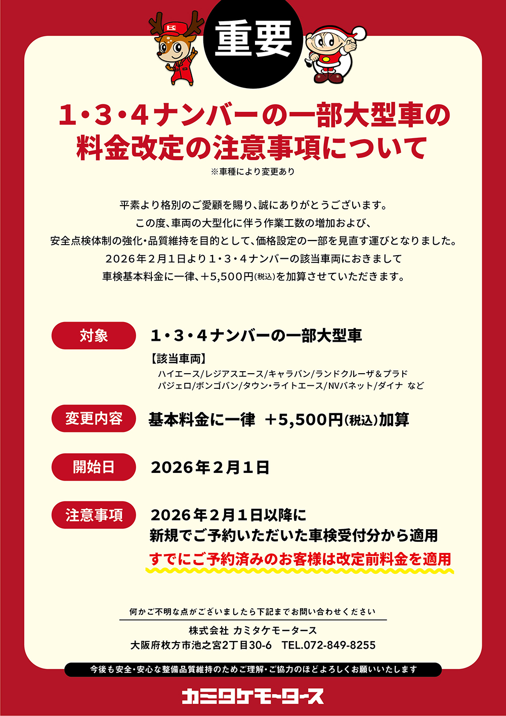 大型乗用車![]() ノア・クラウン セレナ・エスティマetc 車両重量2,000kg以下 |